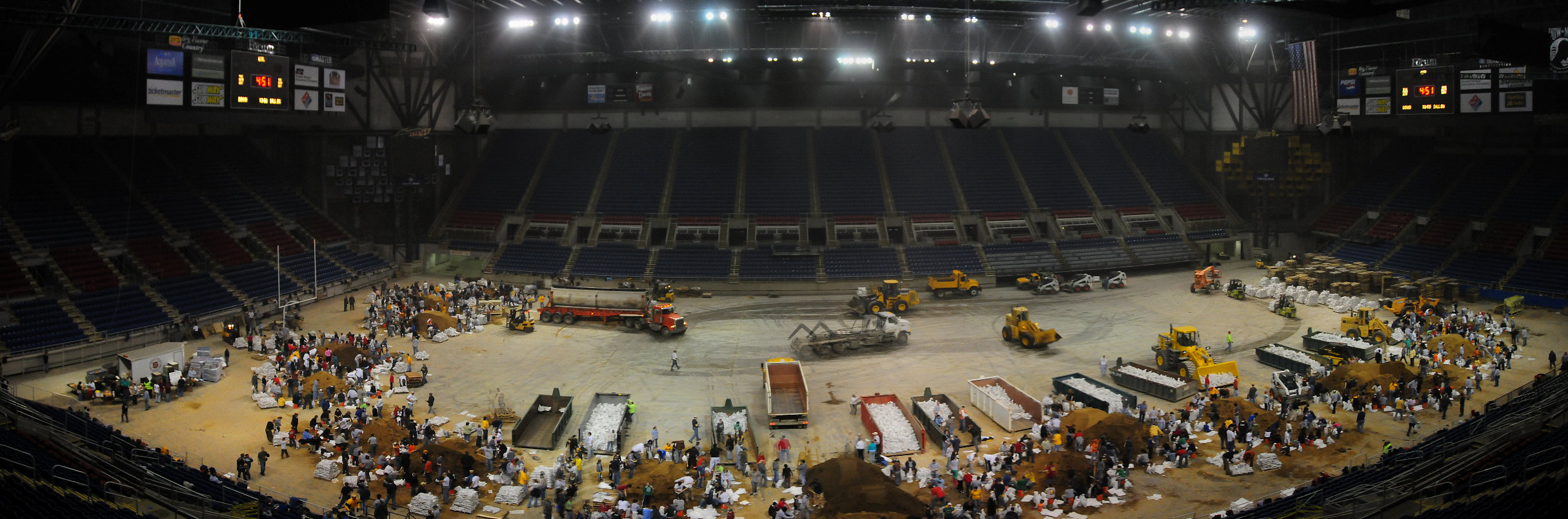 The Fargodome in Fargo has turned into a massive sandbag-making machine. Thousands of volunteers are bagging tons of sand to help area residents keep the Red River at bay. The city will produce more than 2 million sandbags.